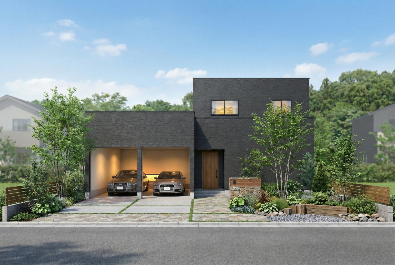 自然素材の心地よさに包まれながらガレージにある愛車を鑑賞できる間取り設計で常に心躍る暮らし。