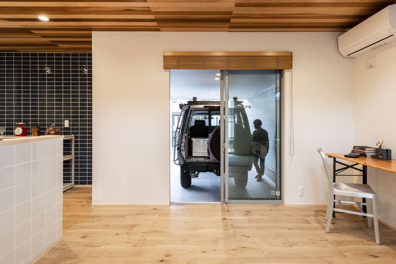 ガレージをのぞけるリビングと、光が心地いい和室のある暮らし。