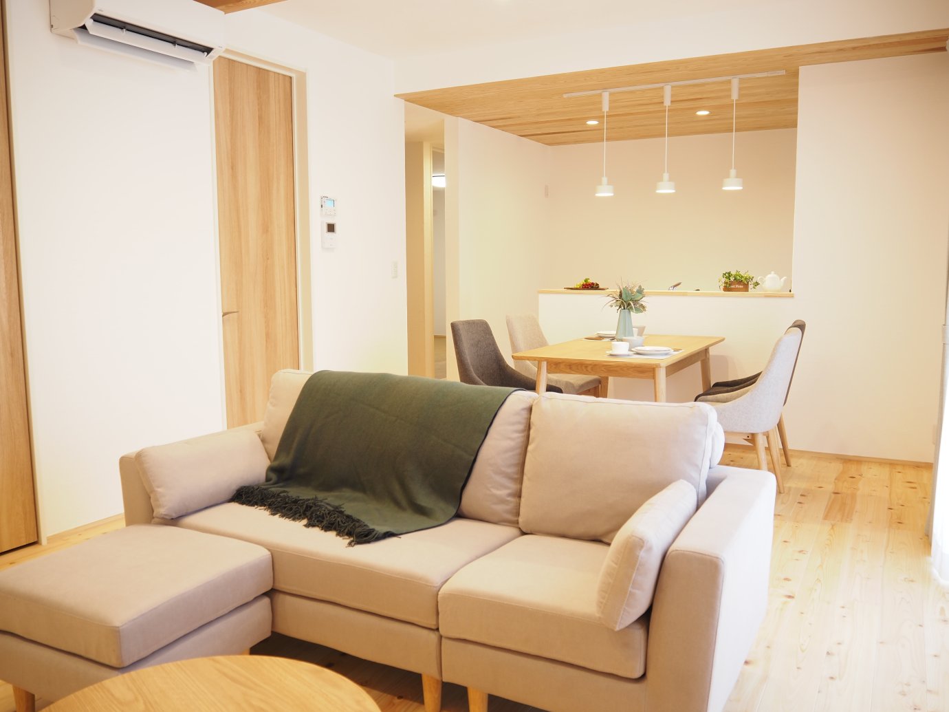 調湿・消臭効果を持つ無添加漆喰と、桧の無垢床で健康的な心地よい暮らしを実現。