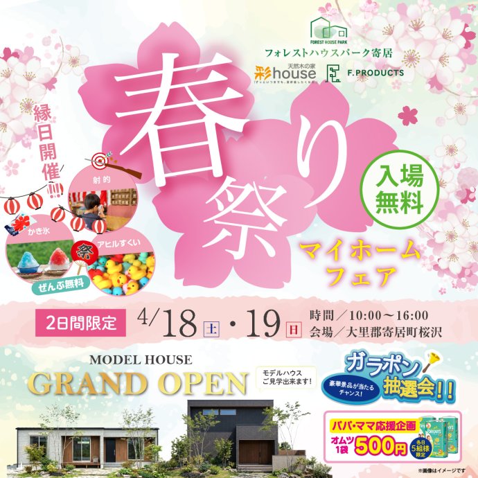 モデルハウス2棟同時見学会&春祭りマイホームフェアを開催いたします!