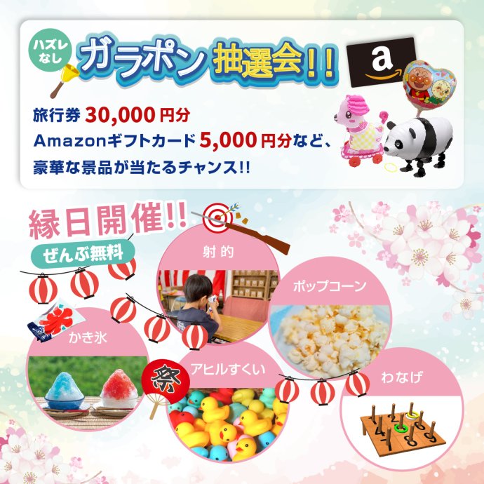 ガラポン抽選会や射的など、