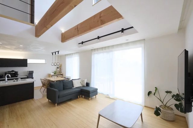1階リビングの天井を吹き抜けにすることで、