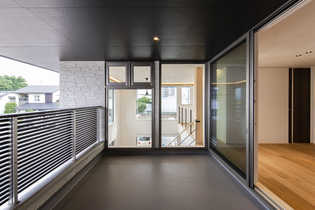 リビング吹き抜けと広々インナーバルコニーで開放感に溢れる住まい。