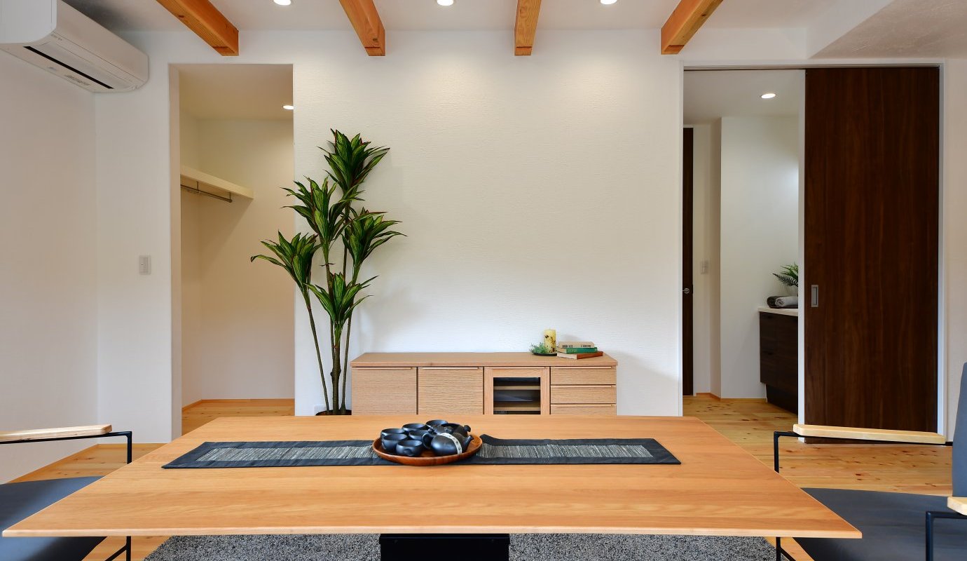 LDKには天然木の化粧梁も織り交ぜ、心がほぐれる住空間を叶えました。